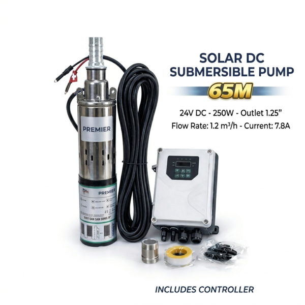 Premier 250W Solar Submersible Pump Kit 24V DC 65m Head Digital Controller