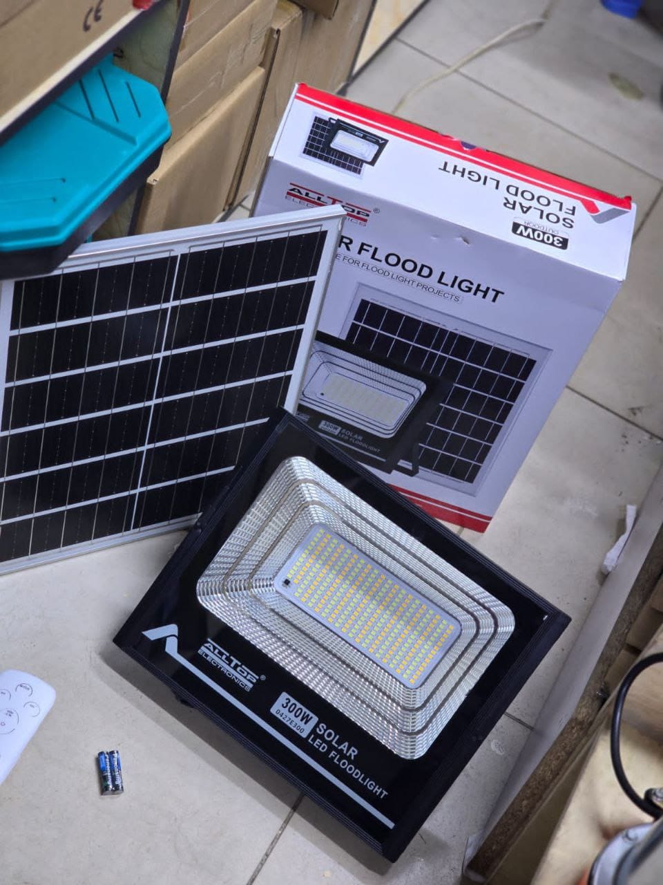 Main working specifications include power 300W solar. Alltop 300W solar flood light. High lumen output for large area illumination.